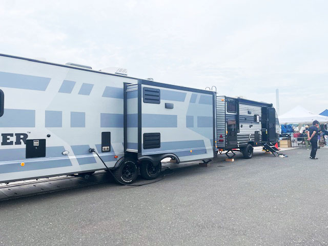 大きなトレーラーの展示もありました。初めて室内を見ましたが広いんですね!!とても豪華でした。カーレースの控室で使われたりと、ホテルのような感覚なんですね。ついついあちこちの戸棚を開けてしまいました。
