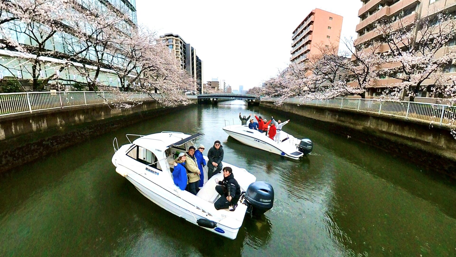 このコースは、小型ボートから運河沿いの舟運風景や100年以上の歴史のある古い倉庫と桜を見ながら江戸時代にいかに川での物流が盛んだったかを感じさせる景色が見れます。今年の桜はどちらも2〜3割の開花状況でしたが、ボート毎に楽しんでいただいているご様子やオーナー様同士の交流が見れて、嬉しかったです。