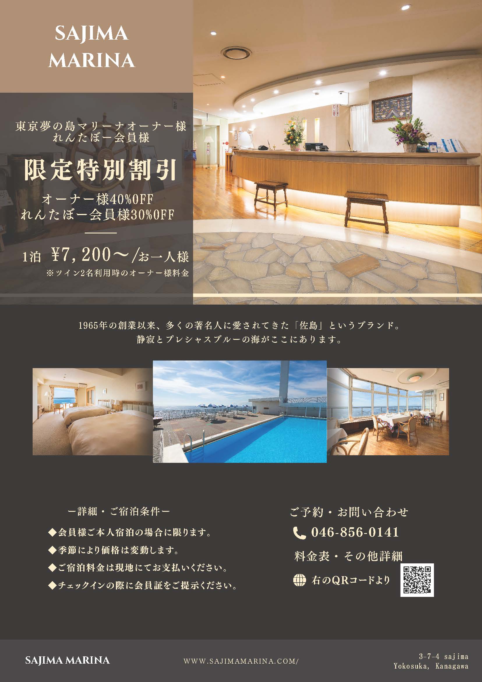 東京夢の島マリーナオーナー様 れんたぼー会員様 佐島マリーナ限定特別割引 2026年04月25日 お知らせ 1965年の創業以来、多くの著名人に愛されてきた「佐島」というブランド。 静寂とプレシャスブルーの海がここにあります。 ぜひこの機会にお越しください。 リーフレット 料金表